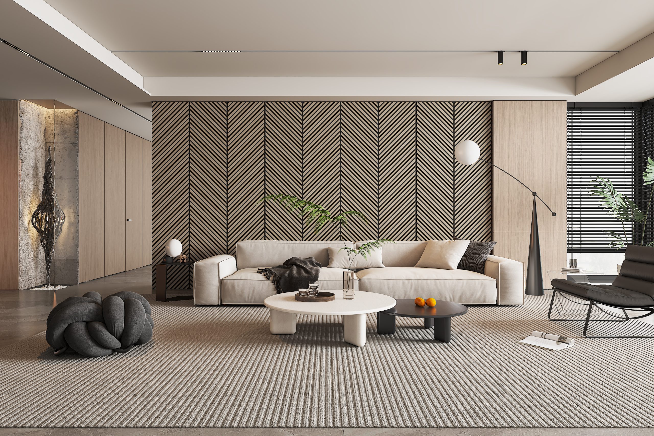 Op het vilten oppervlak zijn zwarte MDF-latten bevestigd, bedekt met echt houtfineer, wat betekent dat elke individuele lat uniek is. De lattenwand is verkrijgbaar in verschillende decoraties, waardoor je de perfecte stijl voor jouw interieur kunt kiezen. Bij het monteren van de panelen is het essentieel om een afstand van 2 mm tussen de verschillende panelen te behouden, omdat de vilten achterkant door temperatuurverschillen licht kan uitzetten.