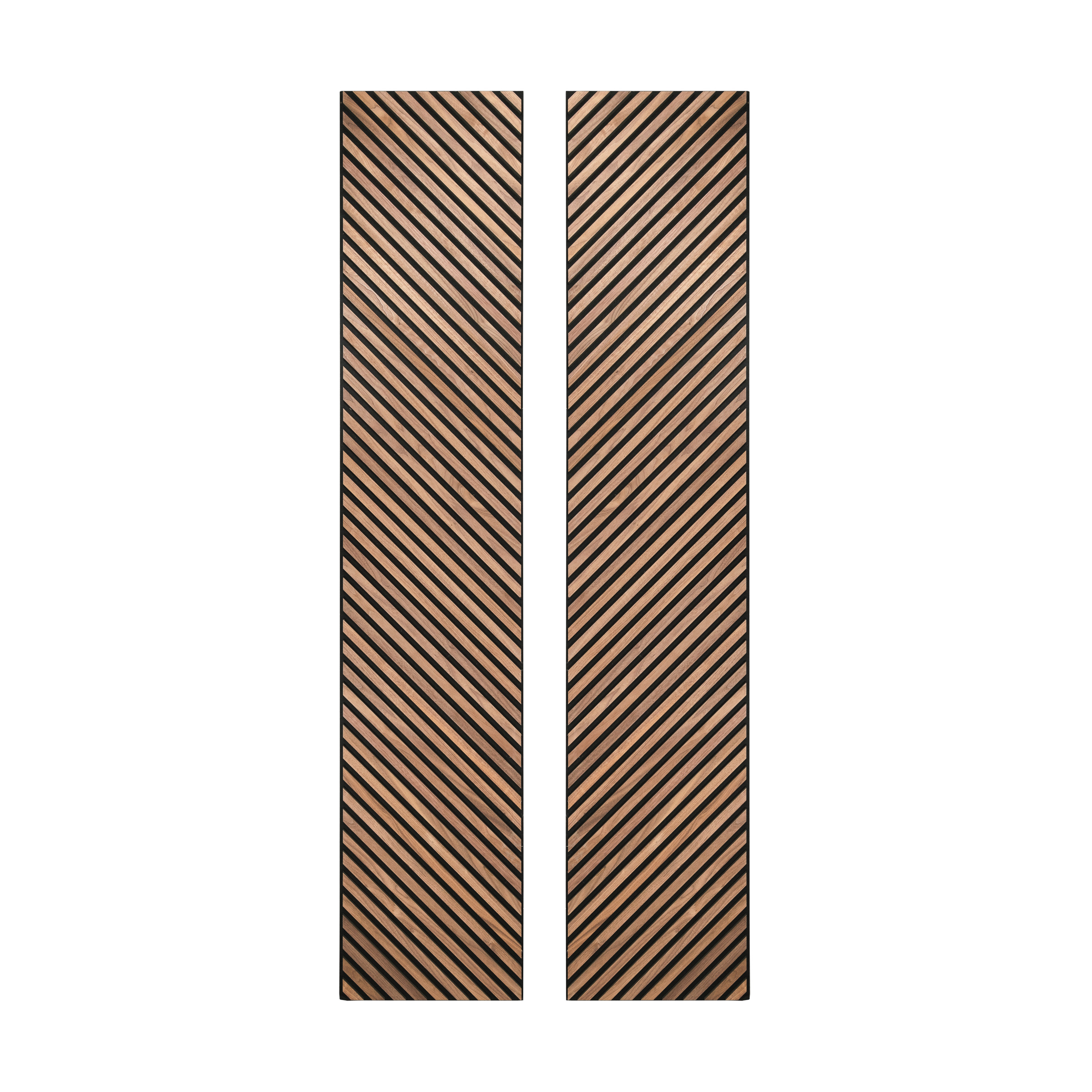 Met de lattenwand breng je moeiteloos een Scandinavisch elegant ontwerp in je huis. Dankzij de gebruiksklare panelen kun je snel een wand in je woonkamer, keuken of slaapkamer afsluiten, waardoor een warme ambiance ontstaat. Elk paneel heeft een lengte van 260 cm en een breedte van 52,6 cm. De achterkant van het paneel, gemaakt van duurzame materialen zoals gerecyclede PET-flessen, is zo ontworpen dat je direct met een nieuw paneel kunt doorgaan en de juiste tussenruimte tussen de latten behouden blijft.