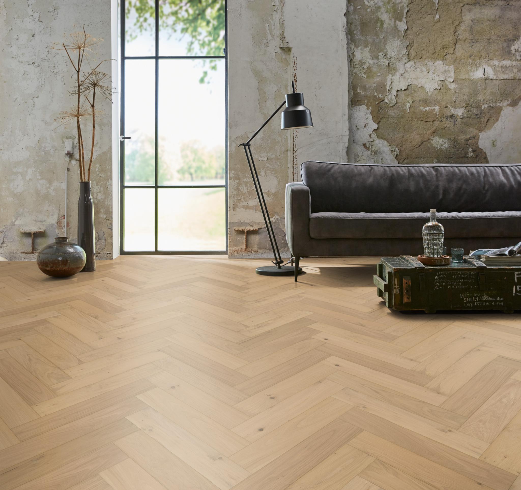 Met een toplaag van 3mm is de Beverly Hills visgraat parketvloer enorm sterk in zijn soort. De structuur van de plank valt onder de klasse rustiek A/B, wat betekent dat de vloer een rustiek patroon. Met deze vloer stop je de warme en rijke uitstraling van parket in een modern jasje door de vloer in visgraatmotief te leggen. Dit tegen zeer goede kwaliteit en zeer gunstige prijs.