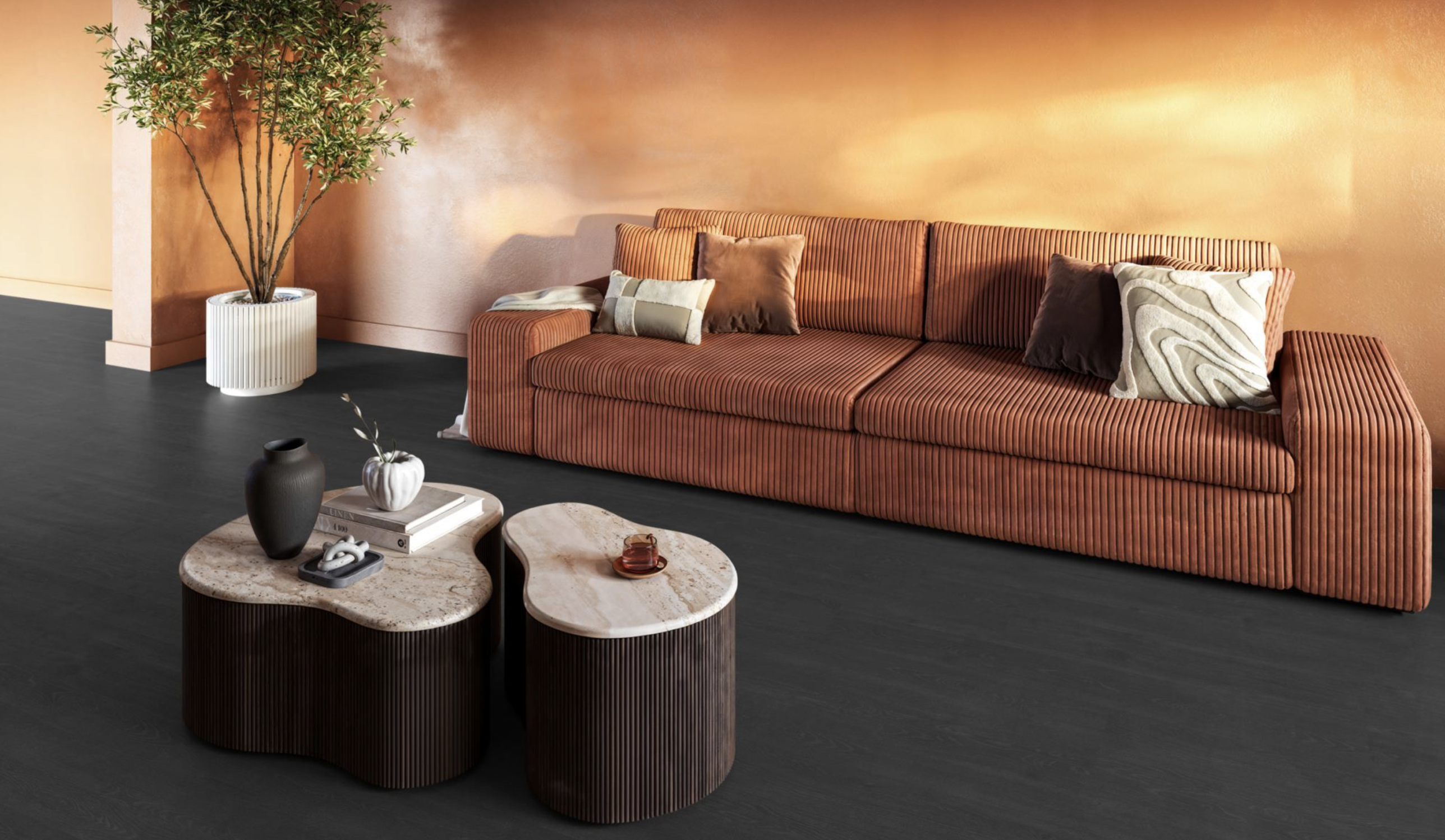 De Forest Hills straalt een stoer karakter uit met zijn brede planken en natuurgetrouwe structuur, die de schoonheid van de natuur in huis haalt. De matte toplaag geeft een moderne afwerking en is eenvoudig te onderhouden. Deze waterbestendige vloer is ideaal voor vochtige ruimtes zoals de badkamer, keuken en bijkeuken, en biedt bovendien comfort door zijn geschiktheid voor vloerverwarming en -koeling. Verkrijgbaar in acht moderne kleuren, waardoor de vloer perfect in zowel eigentijdse als tijdloze interieurs past.