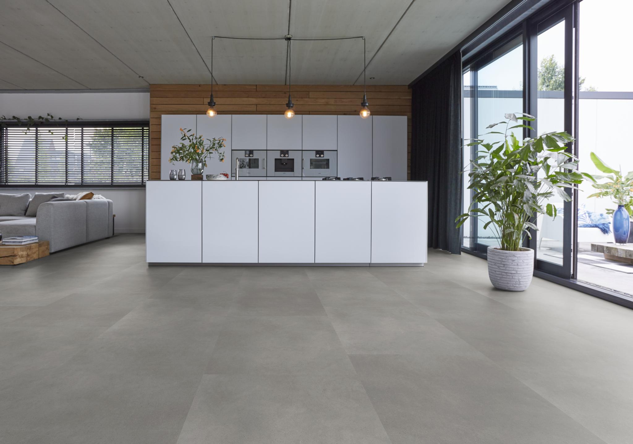 Deze betonlook tegel lijkt op een industri?le betonnen vloeren, maar heeft de voordelen van zacht, sterk en onderhoudsvriendelijk pvc. Verkrijgbaar in extra grote tegel van maarliefst 60x60 cm. De click uitvoering is ook verkrijgbaar in een rechthoekig formaat met een afmeting van 81,2 x 40,6 cm.