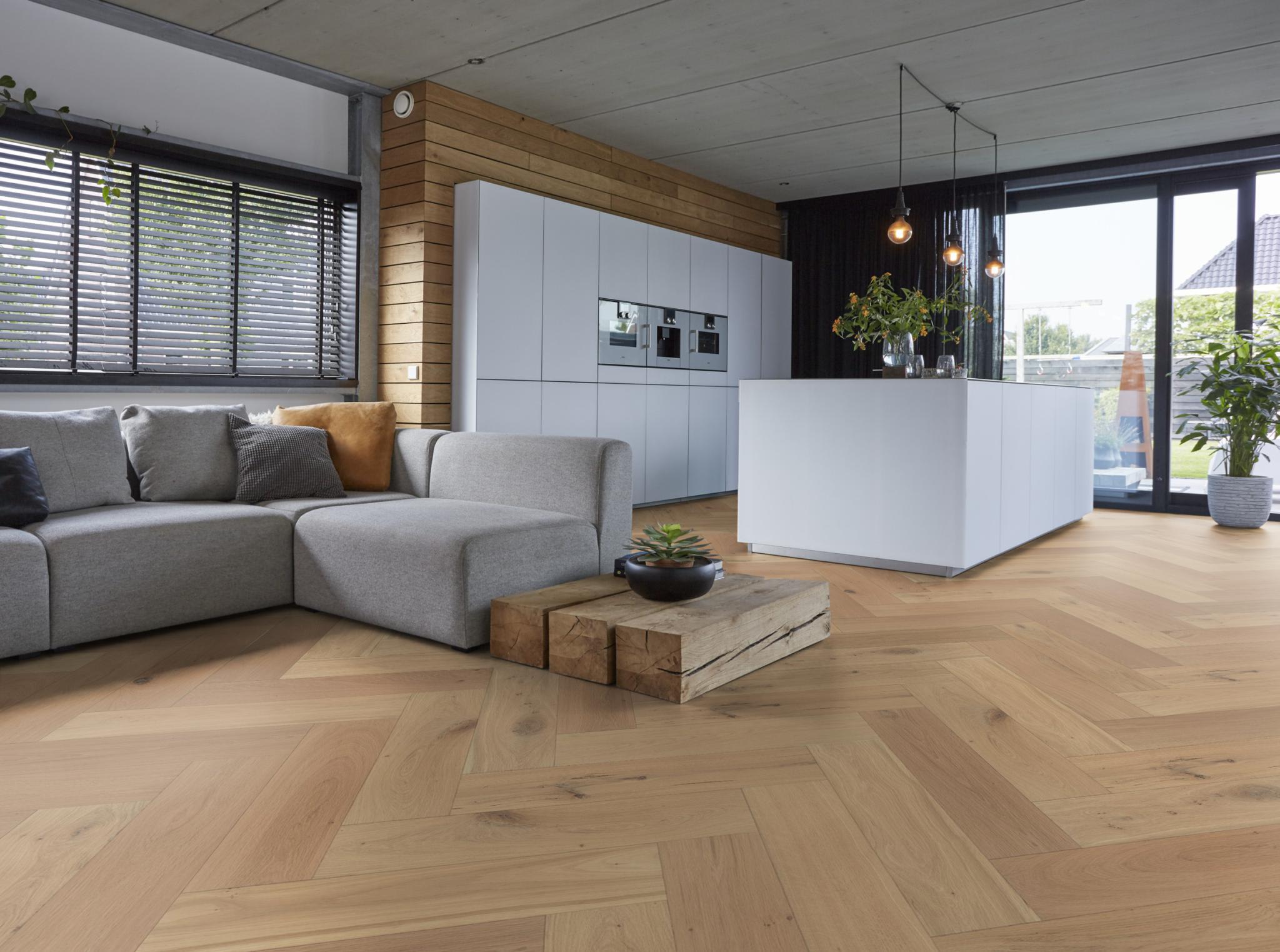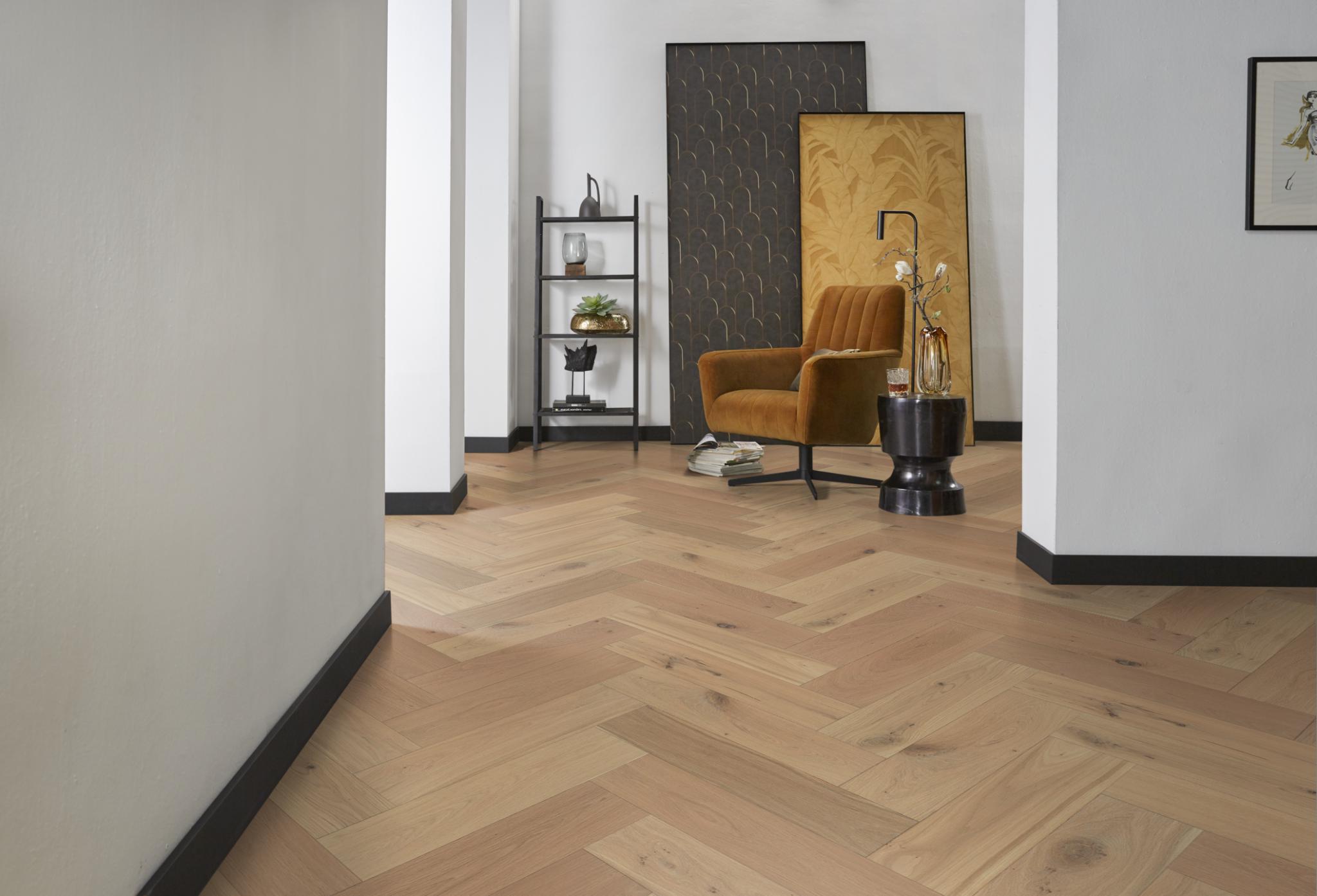 De Reseda visgraat is een trendy visgraat vloer. De vierzijdige V-groef geeft de vloer een bijzonder effect. Uniek is dat deze vloer ook geschikt is voor op de trap. Daarnaast is deze vloer ook onbehandeld verkrijgbaar de vloer in de gewenste vloer afgewerkt kan worden.