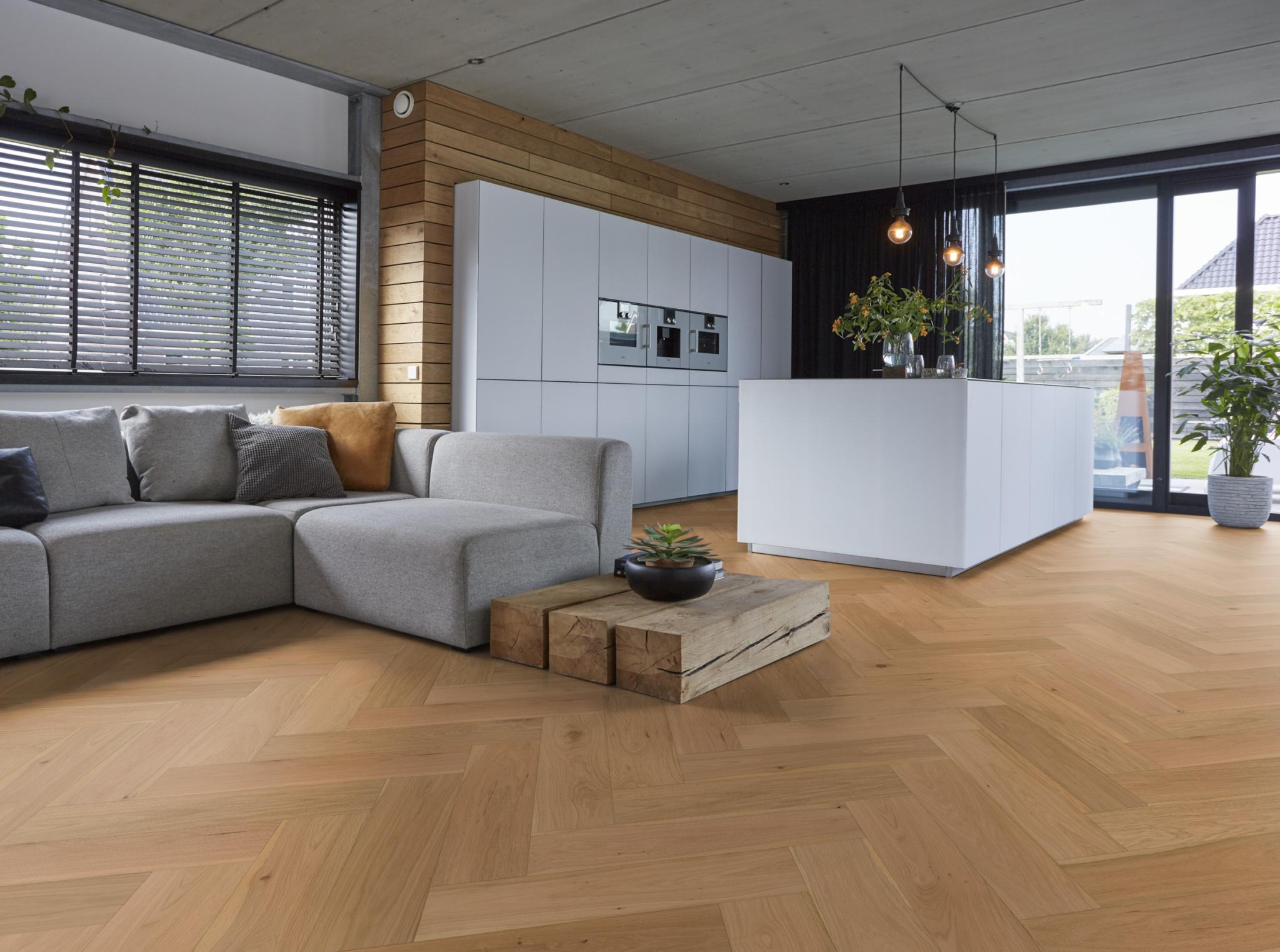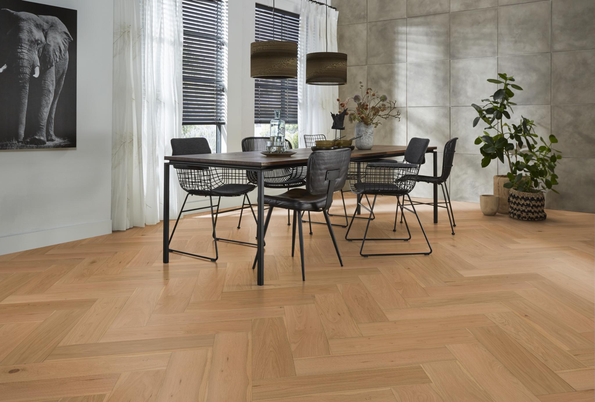De Reseda visgraat is een trendy visgraat vloer. De vierzijdige V-groef geeft de vloer een bijzonder effect. Uniek is dat deze vloer ook geschikt is voor op de trap. Daarnaast is deze vloer ook onbehandeld verkrijgbaar de vloer in de gewenste vloer afgewerkt kan worden.