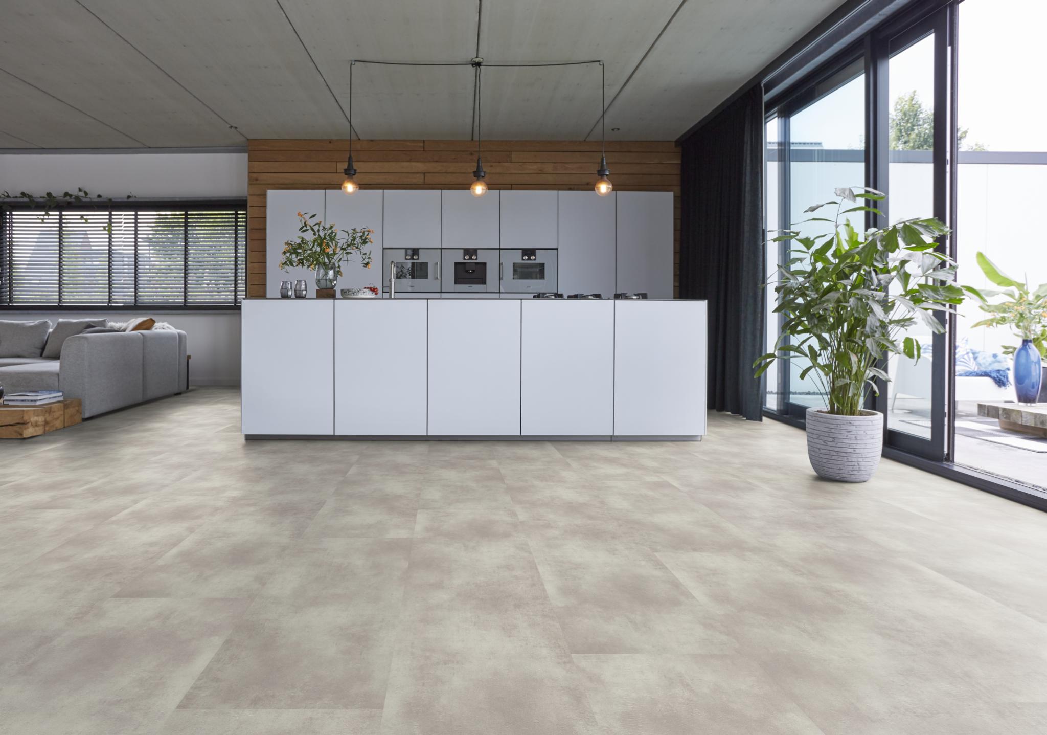 Het populaire betonlook is niet meer weg te denken uit onze pvc-collectie. De moderne en strakke uitstraling van deze vloer komt prachtig tot zijn recht in ieder interieur en is daarnaast gemakkelijk te combineren. De tegels zijn waterbestendig en zeer gemakkelijk in onderhoud. Met de sterke toplaag van 0.55mm heeft u jarenlang plezier van dit tijdloze dessin.