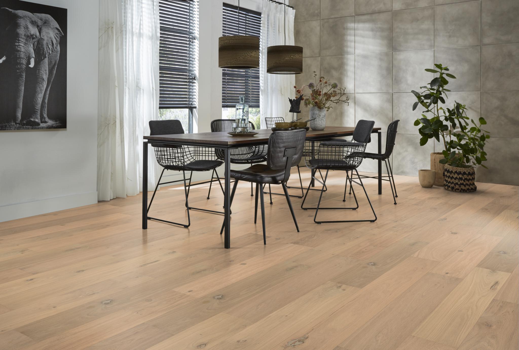 Deze parketvloer is gemaakt van een van de bekendste en populairste houtsoorten, namelijk Europees eikenhout. Met een toplaag van 3mm zijn deze planken erg sterk. De vloer is verkrijgbaar in drie sorteringen, namelijk: select, rustiek en extra rustiek. Stuk voor stuk uniek in hun soort.