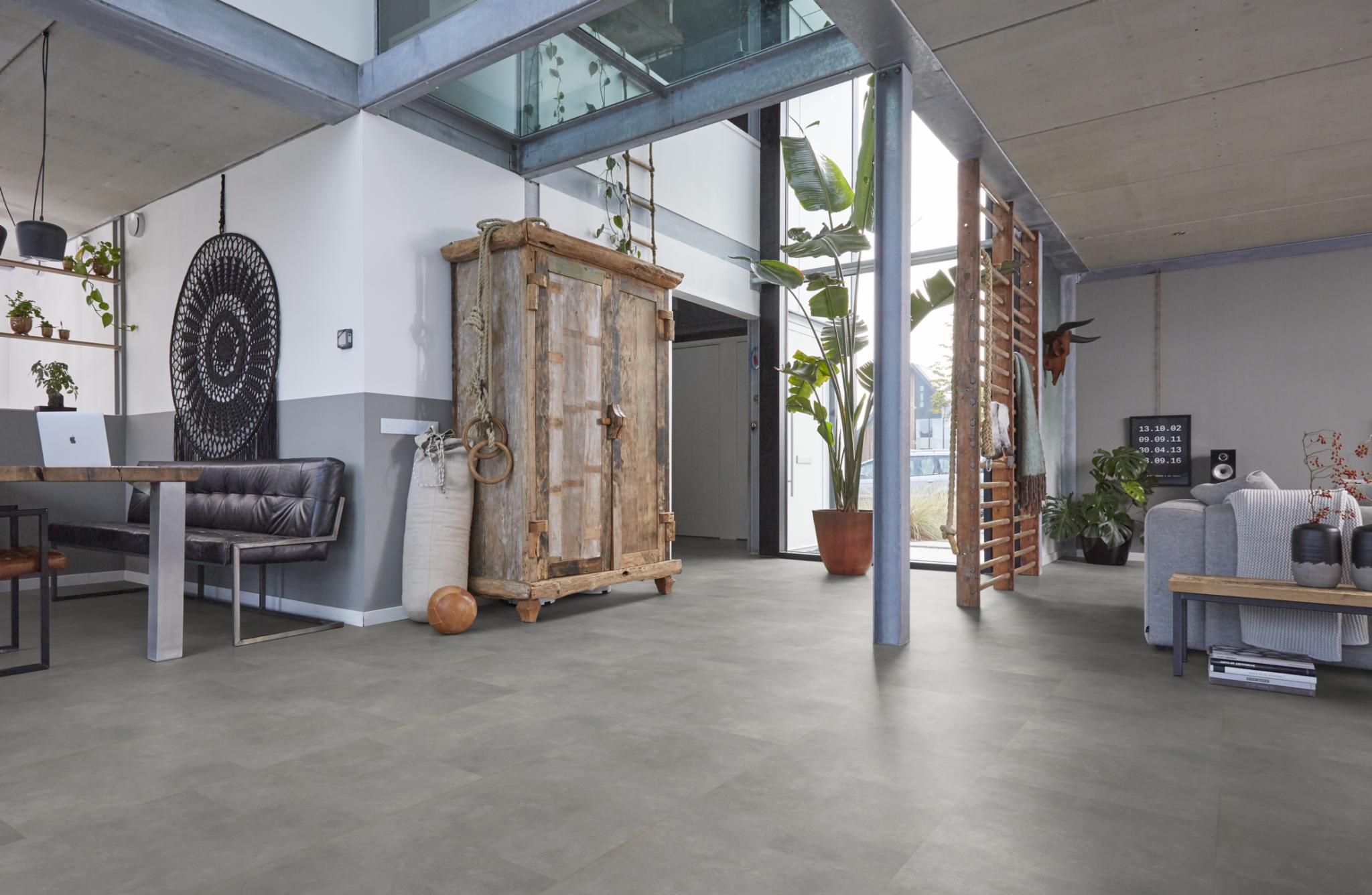 De Victoria collection is robuust en stoer, maar toch zacht aan je voeten. Dat is het grote voordeel van betonlook pvc, met een stoere en strakke uitstraling voor elke ruimte. Deze pvc-vloer is door te leggen op de trap. Want hoe fijn is het als de trapbekleding aansluit bij je nieuwe pvc vloer? De click uitvoering is ook verkrijgbaar in een rechthoekig formaat met een afmeting van 81,2 x 40,6 cm.
