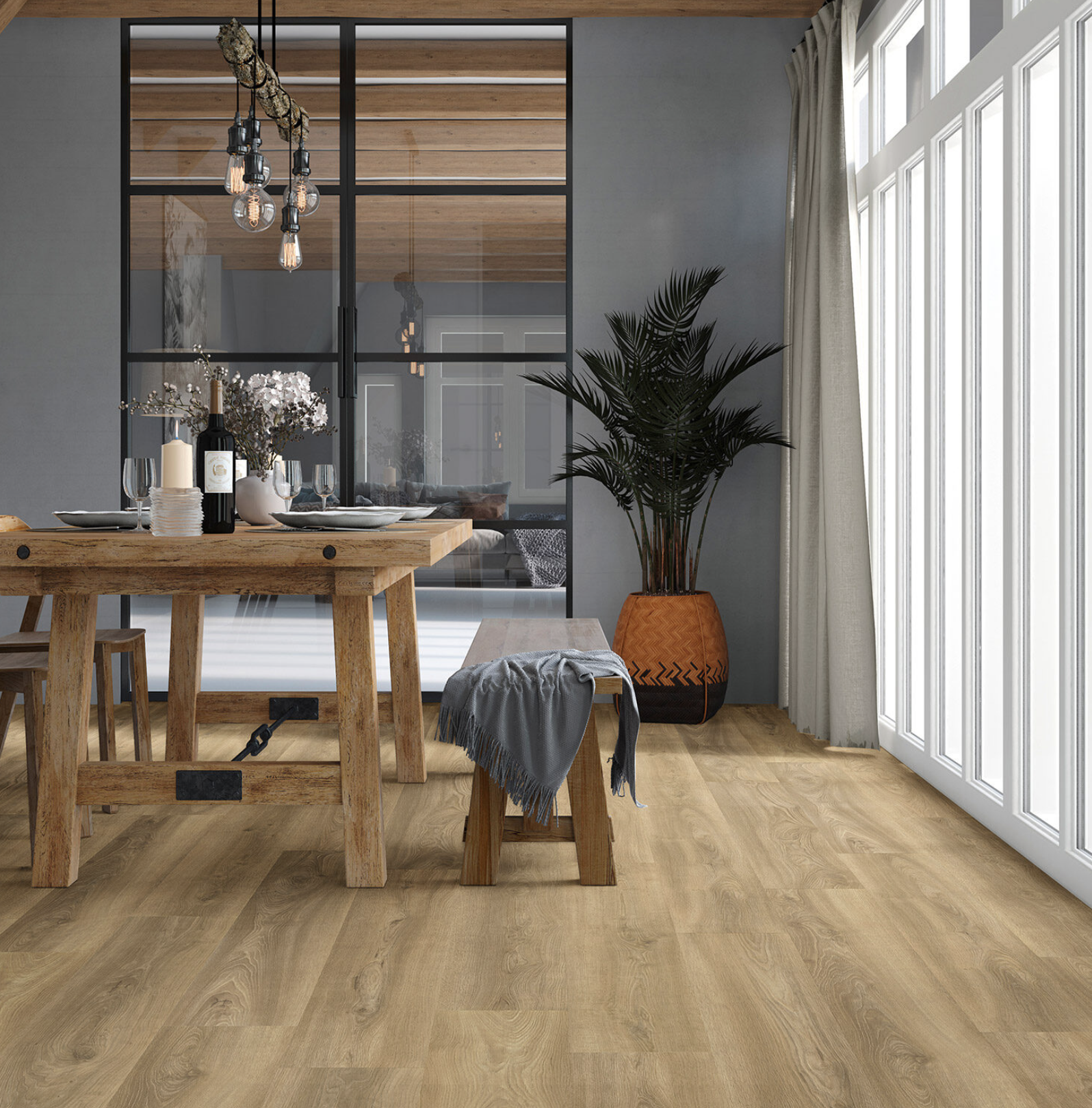 De 3500-serie is geïnspireerd op het ‘Sauerland Oak’ uit het Rothaargebergte in Duitsland. Met behulp van moderne scantechnieken wordt het authentieke houtkarakter nauwkeurig overgebracht op onze PVC-vloeren. Deze serie combineert een natuurgetrouwe en hoogwaardige uitstraling met praktische eigenschappen. De vloeren hebben een slipweerstand van R10 en zijn voorzien van register embossing, wat zorgt voor een voelbare houtstructuur die perfect aansluit bij het ontwerp. Met een supermatte afwerking (glansgraad 1.5-3.5°) en 12 unieke planken is de 3500-serie de ideale keuze voor een stijlvol en natuurlijk interieur.
