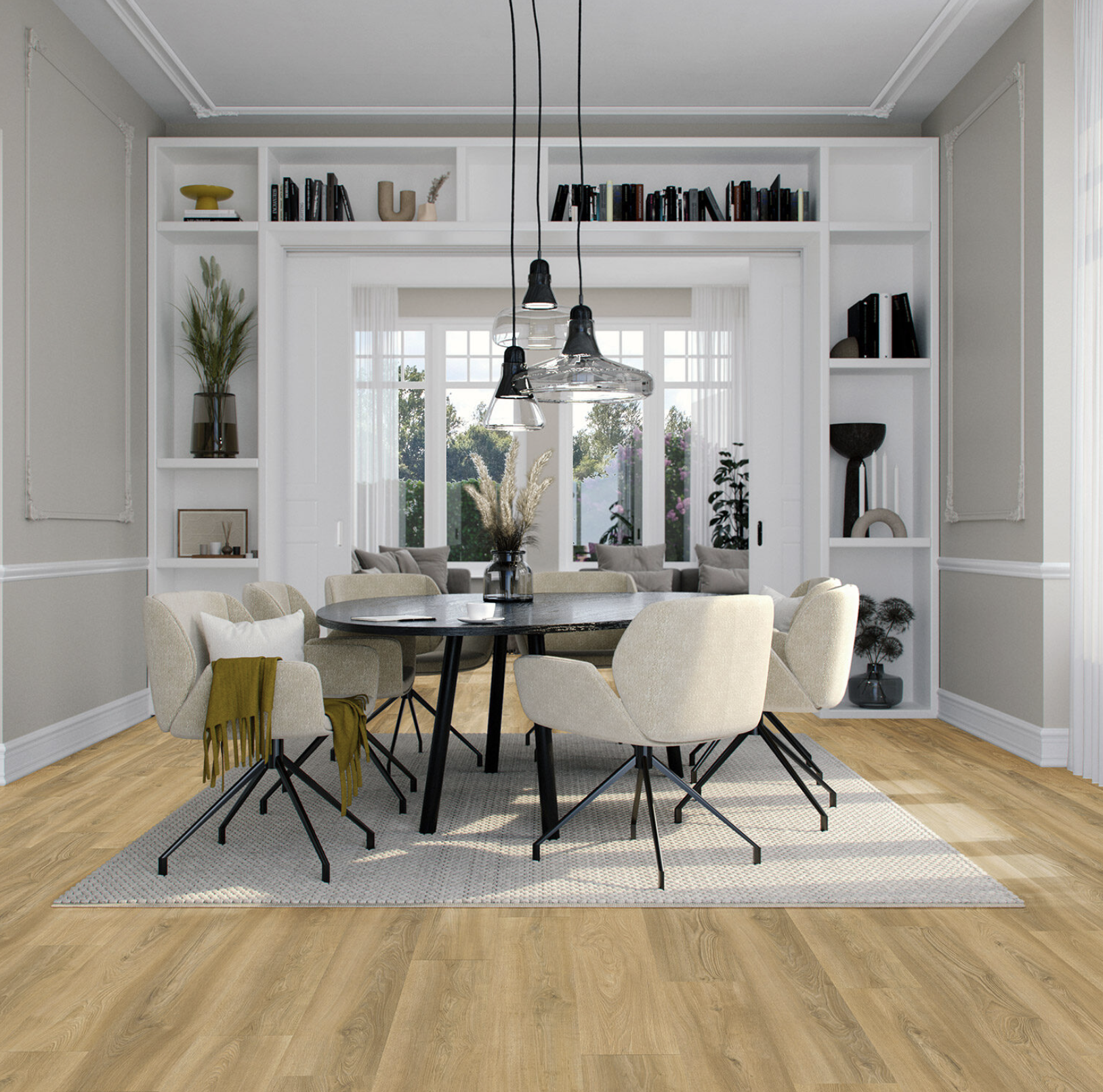 De 3500-serie is geïnspireerd op het ‘Sauerland Oak’ uit het Rothaargebergte in Duitsland. Met behulp van moderne scantechnieken wordt het authentieke houtkarakter nauwkeurig overgebracht op onze PVC-vloeren. Deze serie combineert een natuurgetrouwe en hoogwaardige uitstraling met praktische eigenschappen. De vloeren hebben een slipweerstand van R10 en zijn voorzien van register embossing, wat zorgt voor een voelbare houtstructuur die perfect aansluit bij het ontwerp. Met een supermatte afwerking (glansgraad 1.5-3.5°) en 12 unieke planken is de 3500-serie de ideale keuze voor een stijlvol en natuurlijk interieur.