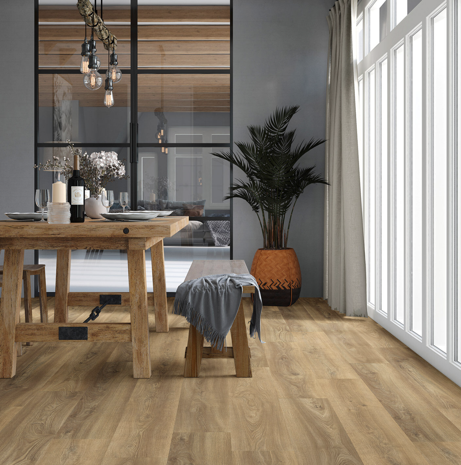 De 3500-serie is geïnspireerd op het ‘Sauerland Oak’ uit het Rothaargebergte in Duitsland. Met behulp van moderne scantechnieken wordt het authentieke houtkarakter nauwkeurig overgebracht op onze PVC-vloeren. Deze serie combineert een natuurgetrouwe en hoogwaardige uitstraling met praktische eigenschappen. De vloeren hebben een slipweerstand van R10 en zijn voorzien van register embossing, wat zorgt voor een voelbare houtstructuur die perfect aansluit bij het ontwerp. Met een supermatte afwerking (glansgraad 1.5-3.5°) en 12 unieke planken is de 3500-serie de ideale keuze voor een stijlvol en natuurlijk interieur.