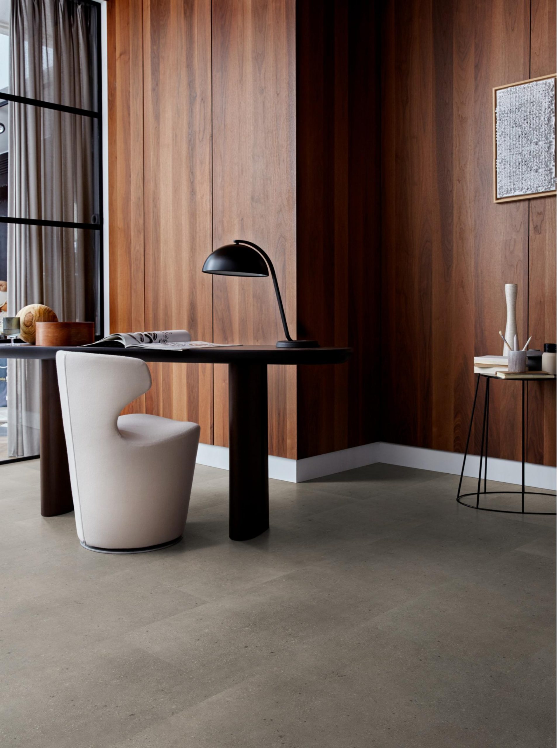 Ben je opzoek naar een echte eyecather? Dan zijn deze betonlook tegels echt wat voor jou! Deze tegels hebben een allover structuur en geven je woonkamer een industri?le look. De collectie is verkrijgbaar in twee formaten: 91,4 x 45,7 cm en 91,4 x 91,4 cm. Dit tegeldecor in XL formaat is een echte blikvanger! De rechthoekige tegel is verkrijgbaar als verlijmde uitvoering, maar ook met een clickverbinding die voorzien is van een geluiddempende onderlaag.