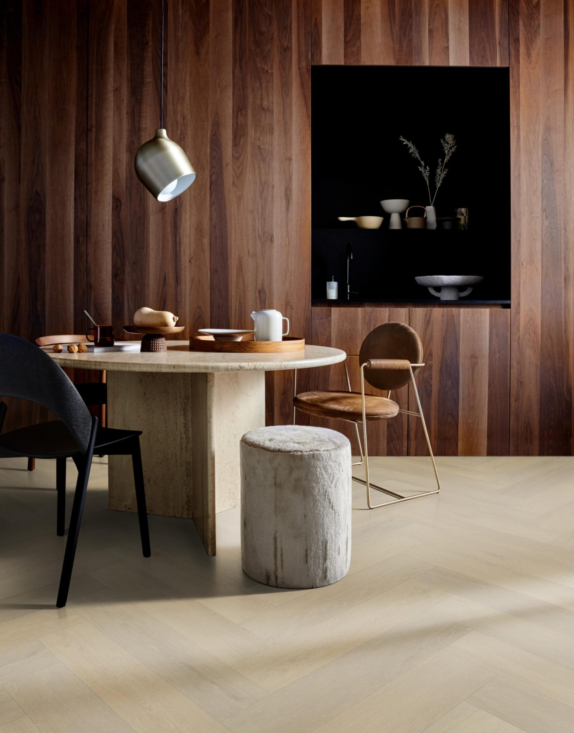 Als je van een patroonvloer houdt is deze kwaliteit echt iets voor jou! Het levendige visgraatmotief geven je interieur een prachtig klassiek karakter. Het patroon van deze vloer lijkt letterlijk op een visgraat, omdat elke plank loodrecht op de andere plank staat. Vanwege het waterbestendige karakter is deze vloer ook perfect voor in een keuken of hal.