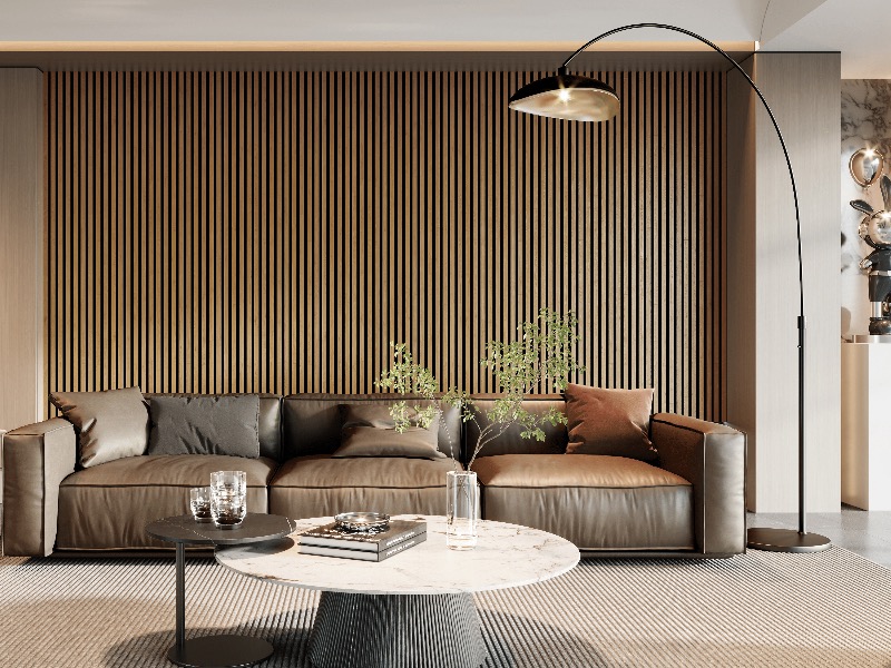 Op het vilten oppervlak zijn zwarte MDF-latten bevestigd, bedekt met echt houtfineer, wat betekent dat elke individuele lat uniek is. De lattenwand is verkrijgbaar in verschillende decoraties, waardoor je de perfecte stijl voor jouw interieur kunt kiezen. Bij het monteren van de panelen is het essentieel om een afstand van 2 mm tussen de verschillende panelen te behouden, omdat de vilten achterkant door temperatuurverschillen licht kan uitzetten.