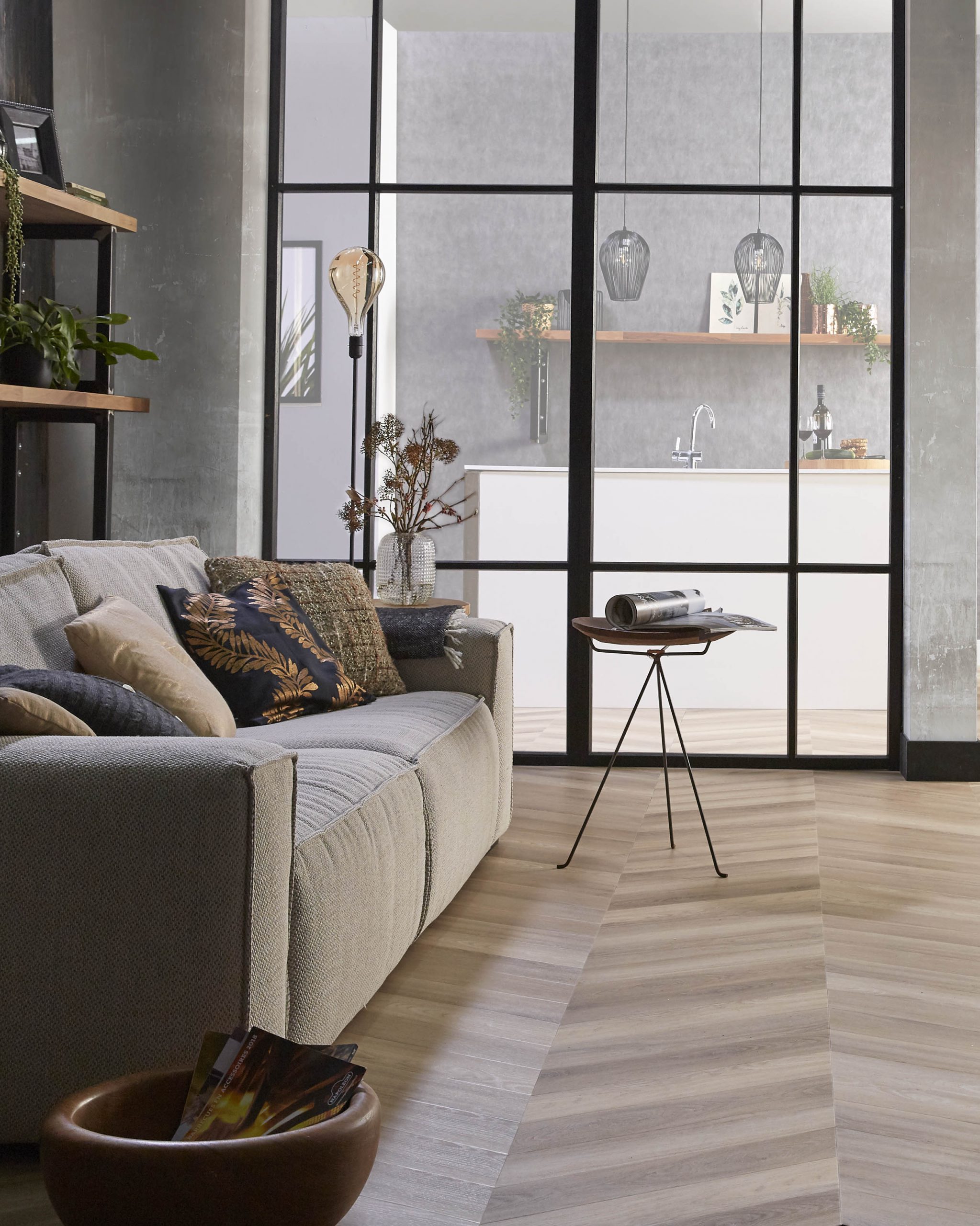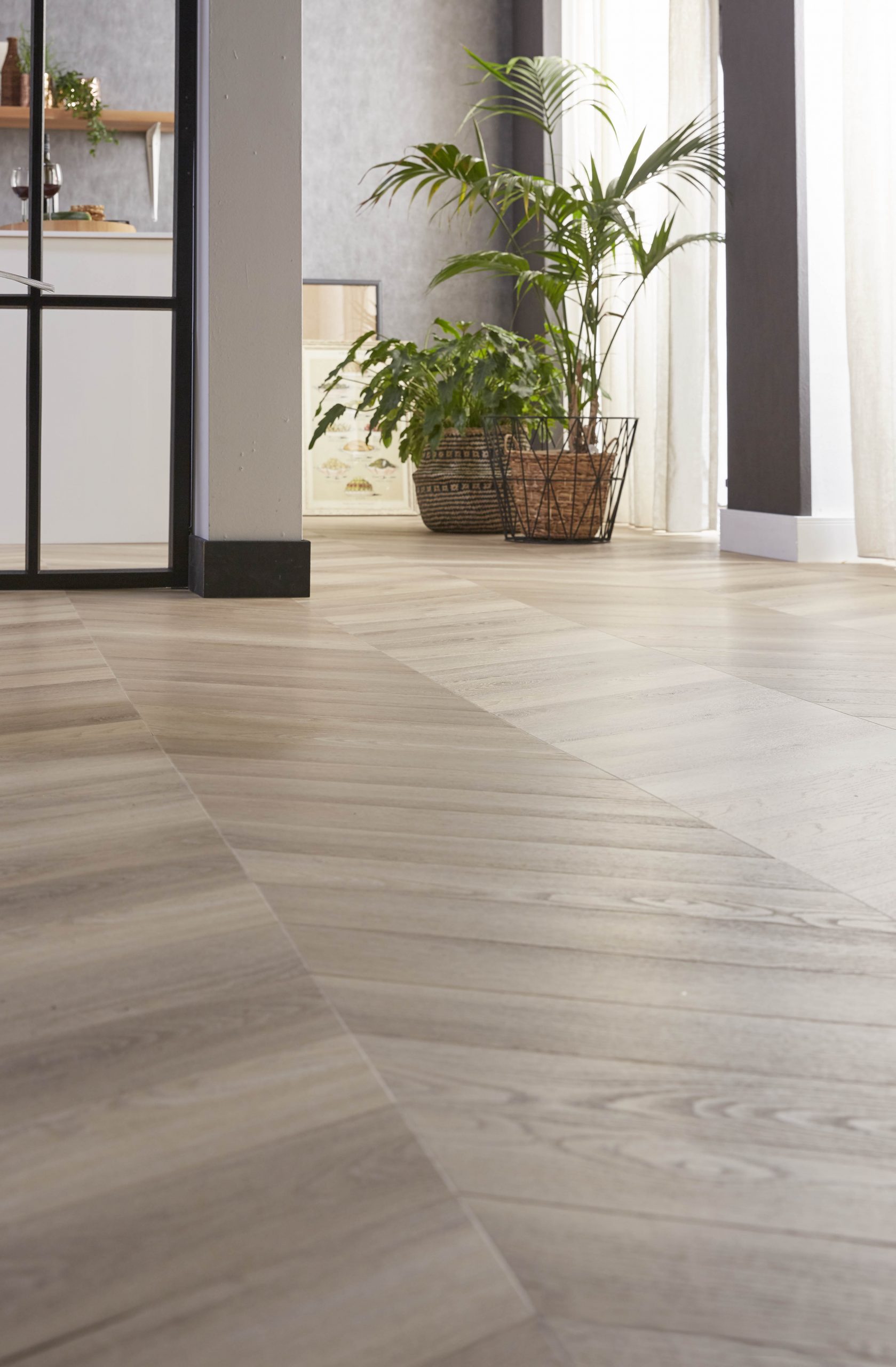 Een Hongaarse punt vloer met rustige en strakke uitstraling in de kleuren naturel en beige, dat is onze pvc-vloer Yup Collection Chevron. Door zijn natuurgetrouwe structuur (EIR) haast niet van echt hout te onderscheiden, maar met de voordelen van een pvc-vloer.